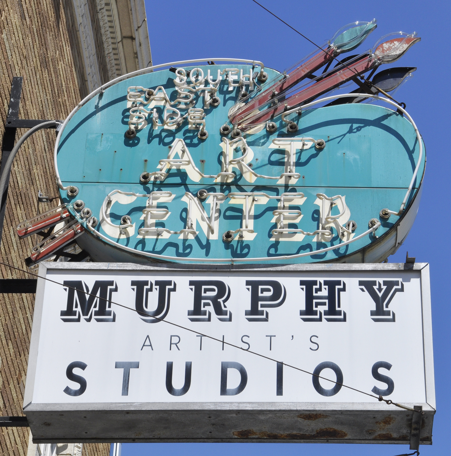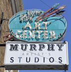 | The G.C. Murphy Building in Indianapolis was built in 1884. The G.C. Murphy five and dime store was a tenant from 1929 until 1998. Since 1999, the building has housed the Murphy Art Center. This sign which appears to be vintage was probably adapted then. I don't know where it was originally installed. For more, see this website. [map] |
