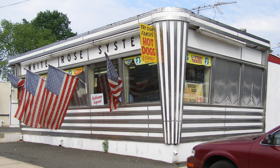 | The White Rose System diners in Linden and Roselle were part of a 1950s chain. They were produced by Kullman. There is another remaining White Rose location in Highland Park, NJ. [Linden map]; [Roselle map] |