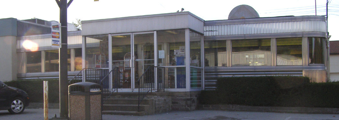 | This diner, a DeRaffele from 1960, has gone by many names over the years. It was originally known as the All-American Diner. It was the Silver Star Diner in 2003. After that, it was known as the Gate 7 Diner. Since 2010, it had been known as the Center City Diner. Around 2019, it became the 9th & Linden Diner. In 2023, it became the Crown Fried Chicken & New York Coffee Shop. [map] |
