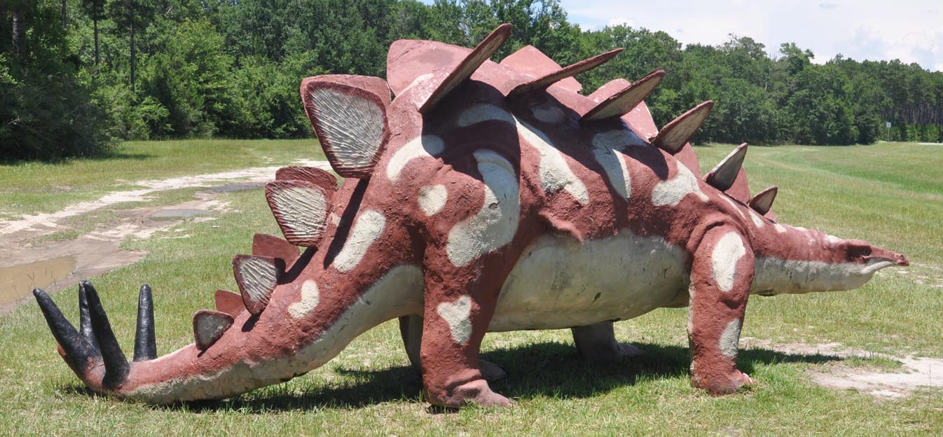 | There were four Dinosaurs statues installed here in 2011: a Brontosaurus, a Tyrannosaurus Rex, a Stegosaurus, and a Triceratops. I only found the Triceratops and Stegosaurus in 2019. I don't think the other two are there anymore. The statues were built by Mark Cline. For more, see these websites: 1, 2, and 3. [map] |