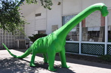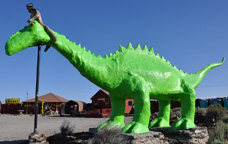 This Dinosaur is installed next to the Oxbow Cafe. It is about six feet tall. The dinosaur at Bob's Museum (see above) was just across the street. According to one source, these two statues may have stood together at one time, as Mama and Baby. However, their styles seem quite different and I have never found photos or postcards to confirm that possibility. [map]