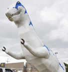 | This Tyrannosaurus Rex sign was installed in the parking lot of the Eastern Plains Event Center in the early 1990s. In 2022, funds were being raised to restore the painted plywood panels and possibly add LED lighting. In 2024, the panels were repaired painted green. [map] |