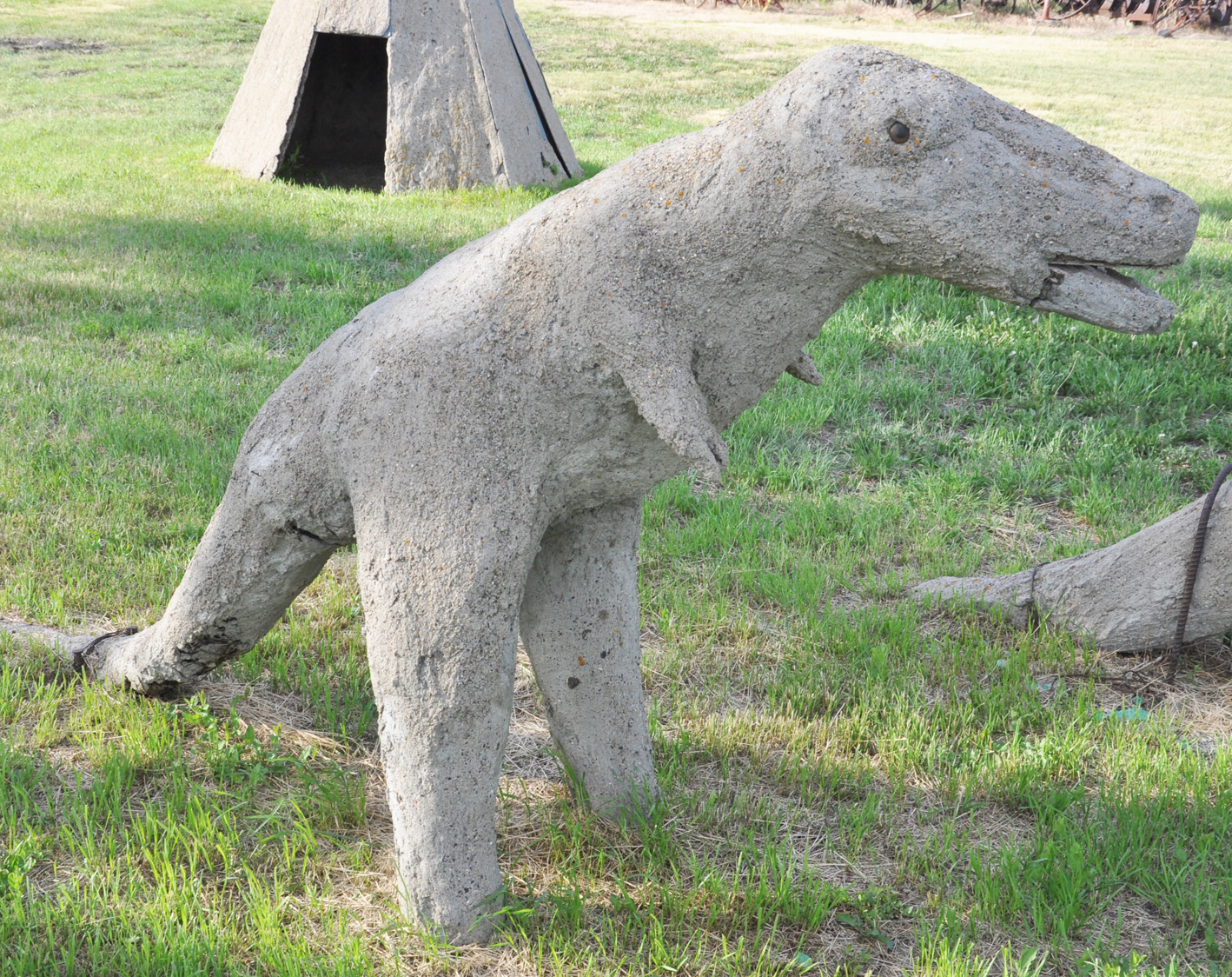 | These concrete Dinosaur statues at located at the McCone County Museum. I don't know who built them or how long they have been there but they look very old. [map] |