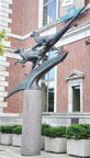 | The Academy of Natural Sciences features this statue of two deinonychus ("terrible claw") dinosaurs outside their museum. The 10-foot-tall bronze statue was created by Kent Ullberg and installed in 1987. [map] |