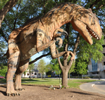 | There are three dinosaur statues located outside the Fort Worth Museum of Science and History. The first two dinosaurs shown above have been there since at least 2007. They were built in 1993 by the Larson Company. The third dinosaur, installed in 2009, is a topiary dinosaur, named Ferns Worth. It is 12 feet tall and 62 feet long. This statue represents the Paluxysaurus jonesi, the State Dinosaur of Texas. [map] |