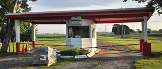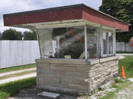 | The Airline Twin Drive-in has been around since at least the 1960s. The glass block ticket booth appears to be from the 1940s or 1950s. The "Twin" was added to the name in 2002 when a second screen was added. It closed in 2014. In 2016, it reopened as the Hummel's Drive-in. Apparently, the ticket booth was rebuilt at that time without the glass block. [map] |