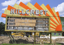 | The Hillcrest Drive-in was built in 1951. It closed in 1987 and was demolished in the early 1990s. The marquee sign was saved and installed in front the Hillcrest High School which had closed in 1979 and been converted into a store known as the Berry Patch. That store is gone and apartments are being built on the property. The sign will be remain and be restored. For more, see these websites: 1 and 2. [map] |