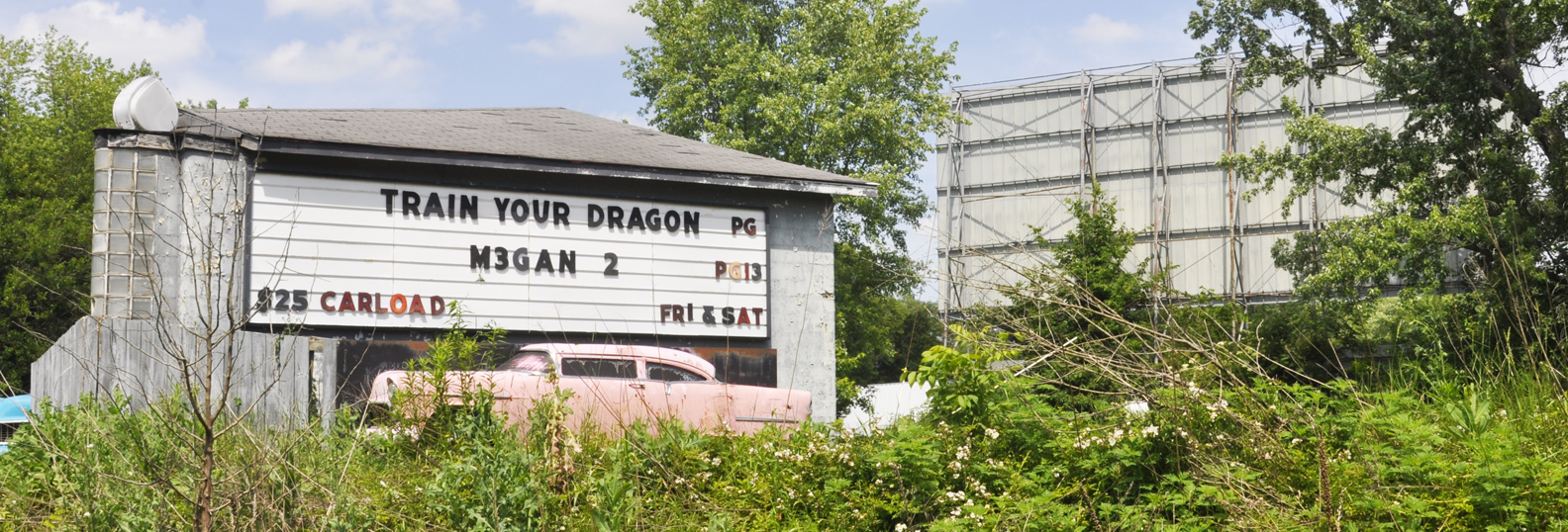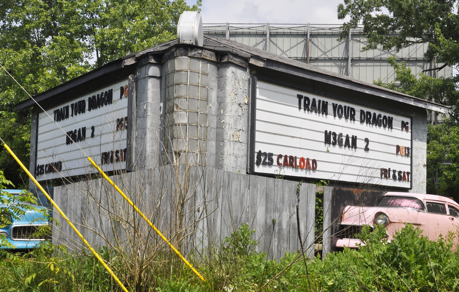 | The Clermont Deluxe Drive-in opened in 1950. It had two screens and a playground. This photo is from 2005. The drive-in closed in 2007. By 2013, the screen tower was gone. For more, see this website. |