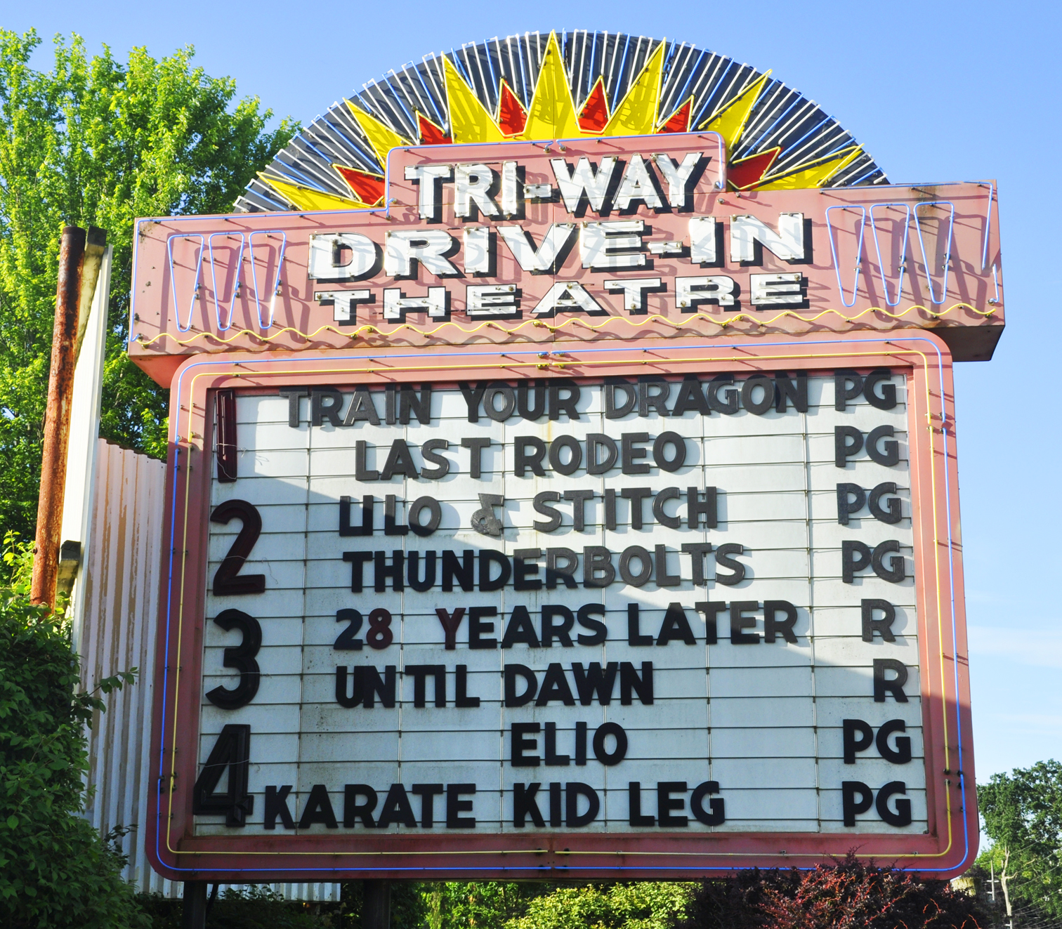 | The Tri-Way Drive-in opened in 1953 as a single-screen. It now has four screens. The name comes from its location at the junction of three main highways. For more, see these websites: 1 and 2. [map] |