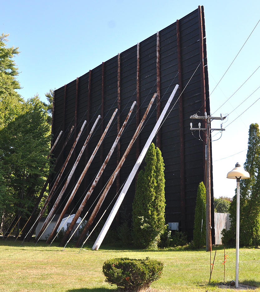| The Skowhegan Drive-in opened in 1954. It has a nice, massive screen tower. The sign had been laying on the ground since at least 2004. These photos are from 2007. The sign was still laying there in 2011. In 2016, a replica sign was installed. The sign on the ground was gone. It is now in a private collection. In 2023, the drive-in closed but the screentower is still standing for now. The sign was sold to the Sandhills Drive-in in Alliance, NE. For more, see this website. [map] |