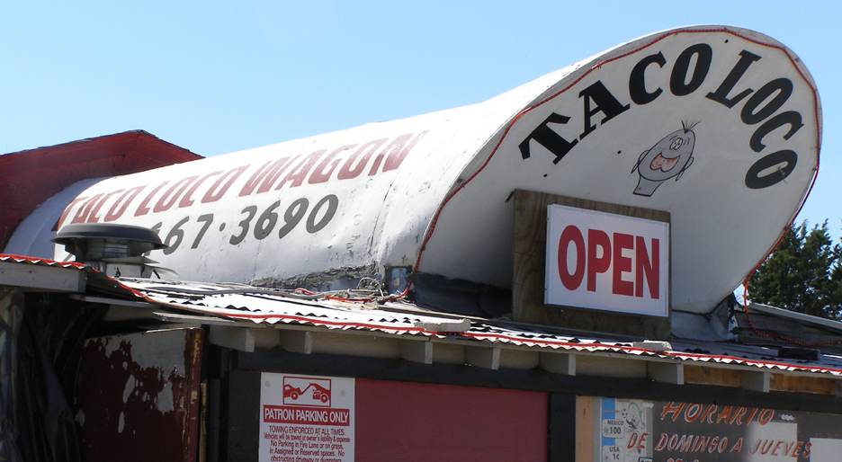 | The Galesburg covered wagon building was demolished and replaced with a modern box. However, this sign remains. [map] |