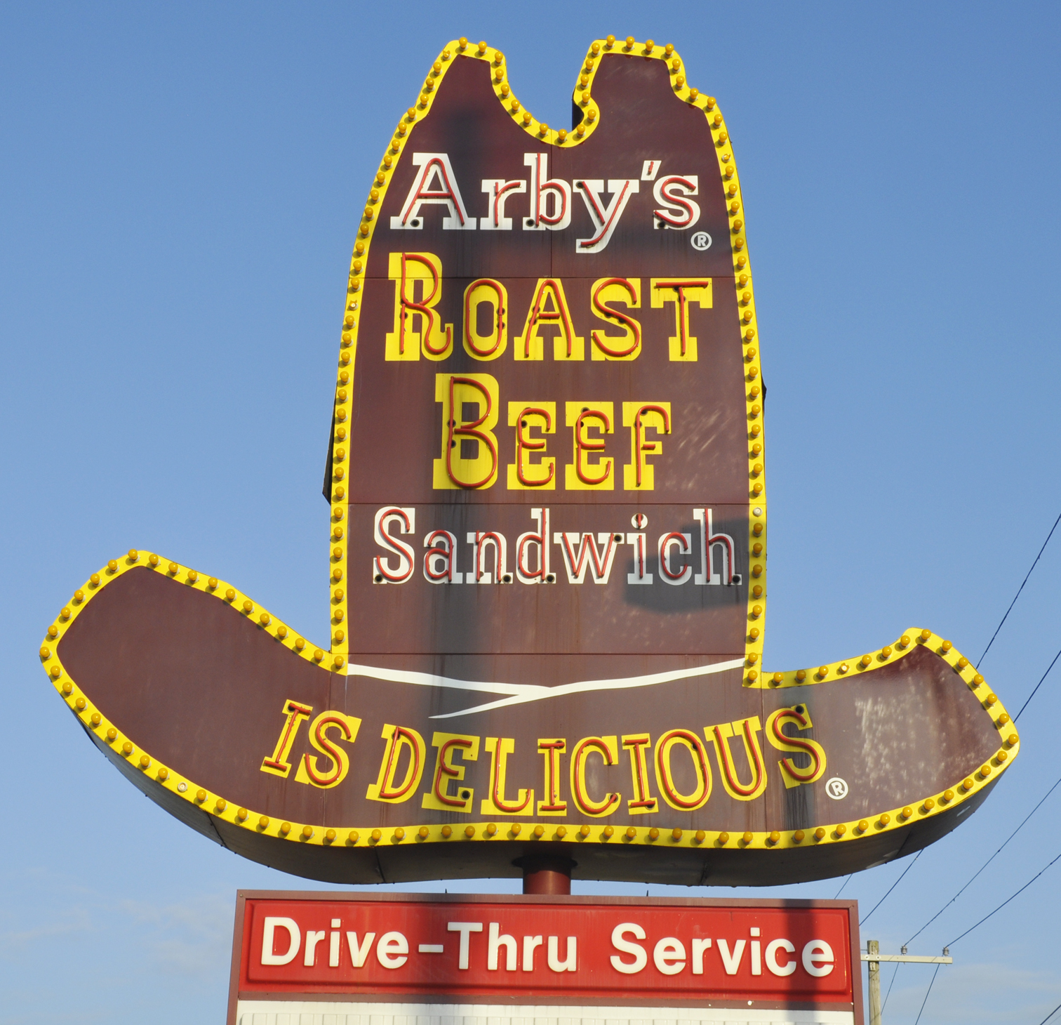 | The Laurel sign was from the late 1960s. I believe the original signs had "Is Delicious" on the bottoms of the hats. This was the only one I have seen with the "Sandwich" on the bottom. The location closed in 2025 and the sign was removed. |
