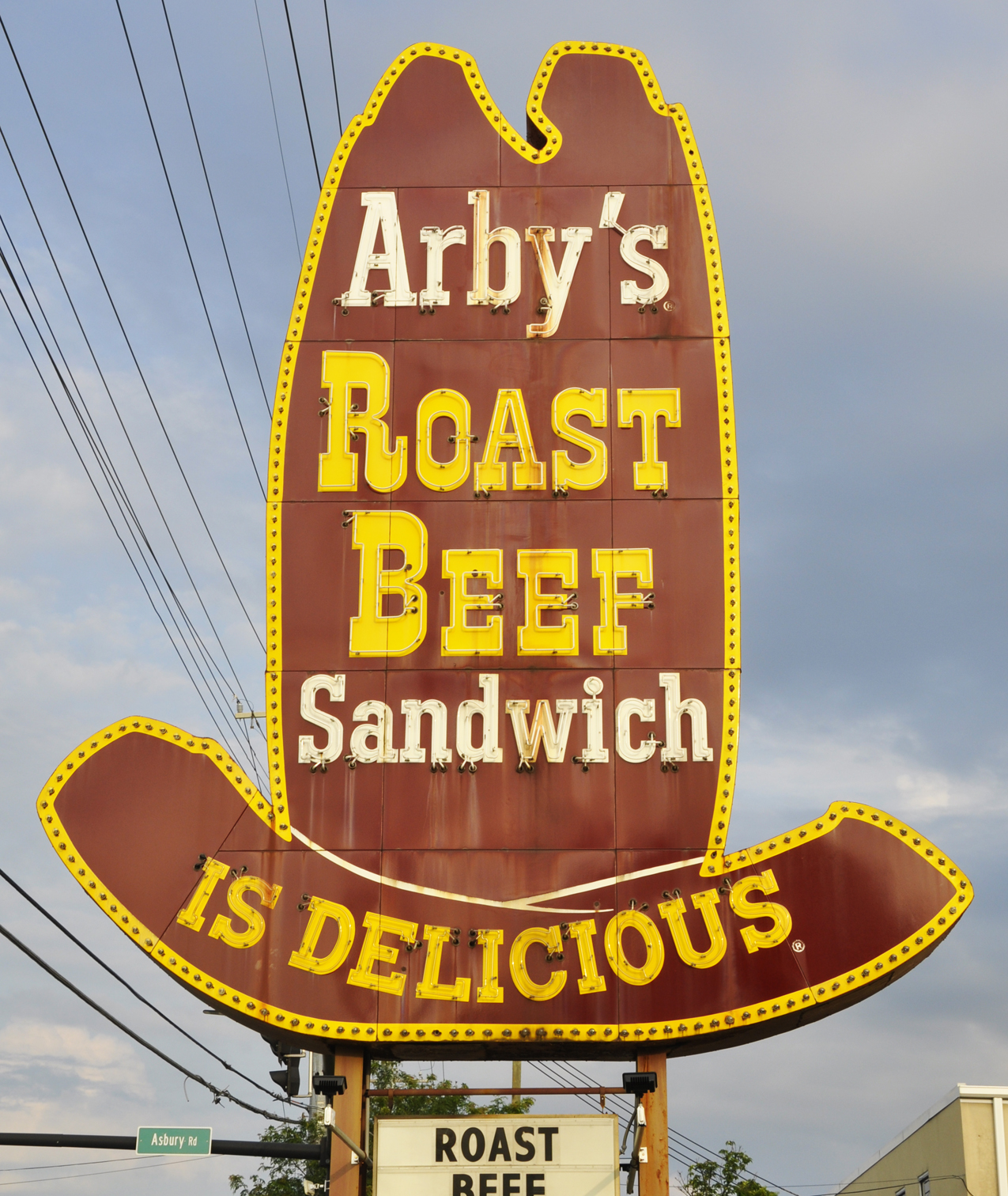 The Arby's sign in Bartlesville was replaced with a plastic version by 2023.