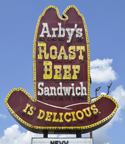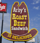 | The photos shown below are just some examples of the Arby's hat signs which were first built in 1964 by the Peskin Sign Co. in Ohio. The original covered wagon buildings at these locations are long gone. These signs were phased out in 1976 in favor of a more cartoonish logo and plastic signs. I believe the neon hat signs came in two sizes. There are probably dozens of other examples of these signs scattered around the country. If you know of any others, I'd love to know about them. The signs and links below are organized alphabetically by state. |
