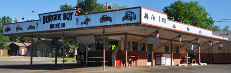 | The Burger Boy Drive-in looks like it has been here since the 1950s or 1960s. There is car hop service. [map] |