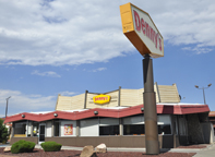 | This former Denny's in Junction City was still operating as a Denny's in 2009. The building housed Napoli's Italian Restaurant when this photo was taken in 2010. By 2012, the restaurant had closed. Around 2015, the building housed the Greek Heroes restaurant. That had closed by 2016. By 2018, the building had been demolished. |