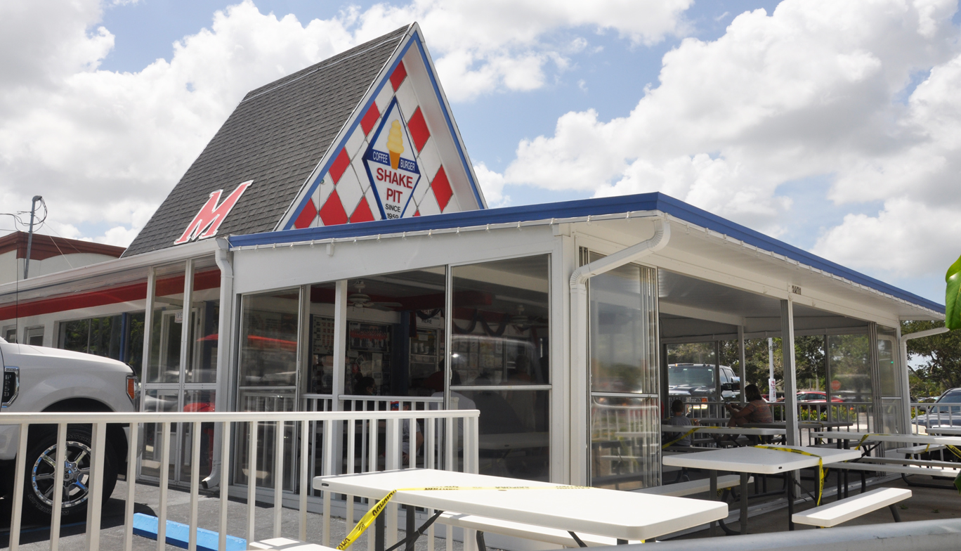 | The Shake Pit opened in 1959. The building was constructed in 1958 when it opened as a Quaker Maid restaurant. This canopy in front was added to the walk-up stand later. For more, see this website. [map] |