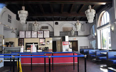 The Parthenon Restaurant opened here in 1975. This building was remodeled to its current look in 1940 for the Cunningham Drug Store. This photo is from 2011. The restaurant closed in 2012. The building was then painted green and housing Lena, a Latin American restaurant. The green paint was a tribute to Cunningham Drugs. By 2016, the building was painted blue and was housing Pretzel Bell. There is another building with the same design in Detroit, MI that also housed a Cunningham Drugs. For more, see this website. [map]