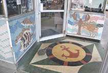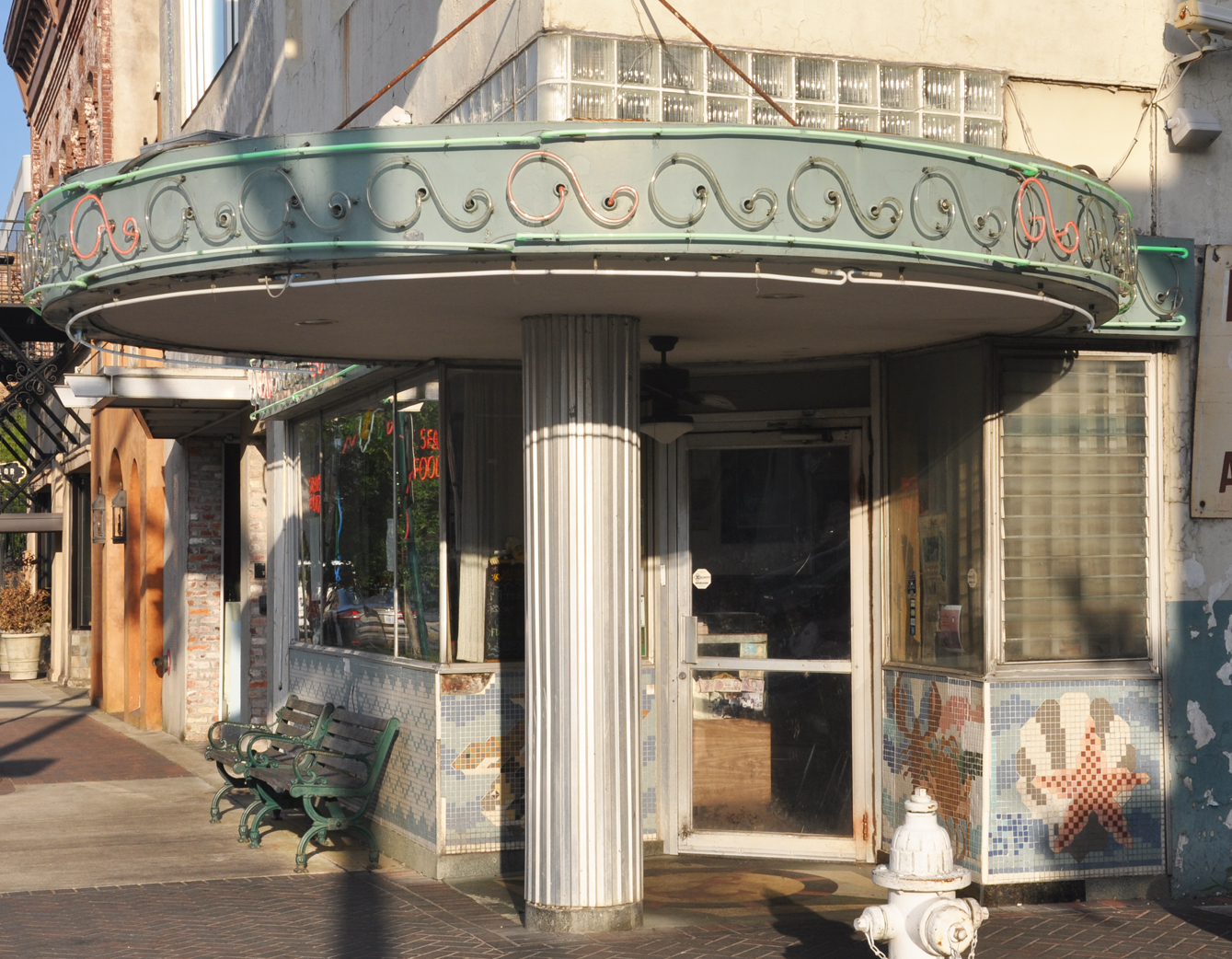 | The Mayflower Cafe opened in 1935 and has been in continuous operation since then. By 2014, the sign had been repainted. In 2024, a new owner closed the restaurant for renovations. The sign and tile have been restored. For more, see this website. [map] |