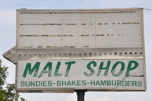 | The Malt Shop opened as a Dairy Queen around 1953, further down the street. By 1955, the Dairy Queen had moved to this location. It became the Malt Shop around 1963. I don't know if the Dairy Queen was originally an A-frame like these or if that roof was added later on. [map] |