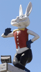 | Mister Shake features an old sign topped by a rabbit and a funky mini golf course. The ice cream sign is gone and the rabbit statue is now on the roof. [map] |