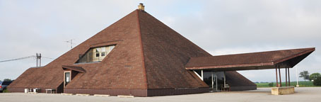 | The Pyramid Supper Club was built in 1961. It is forty feet tall. The interior featured an Egyptian theme with columns, paintings, and statues. It went by other names in later years such as The Nile Club and the Pyramid of the Nile. The restaurant closed in 2009 and has been vacant since then. For more, see these websites: 1, 2, and 3. [map] |