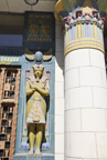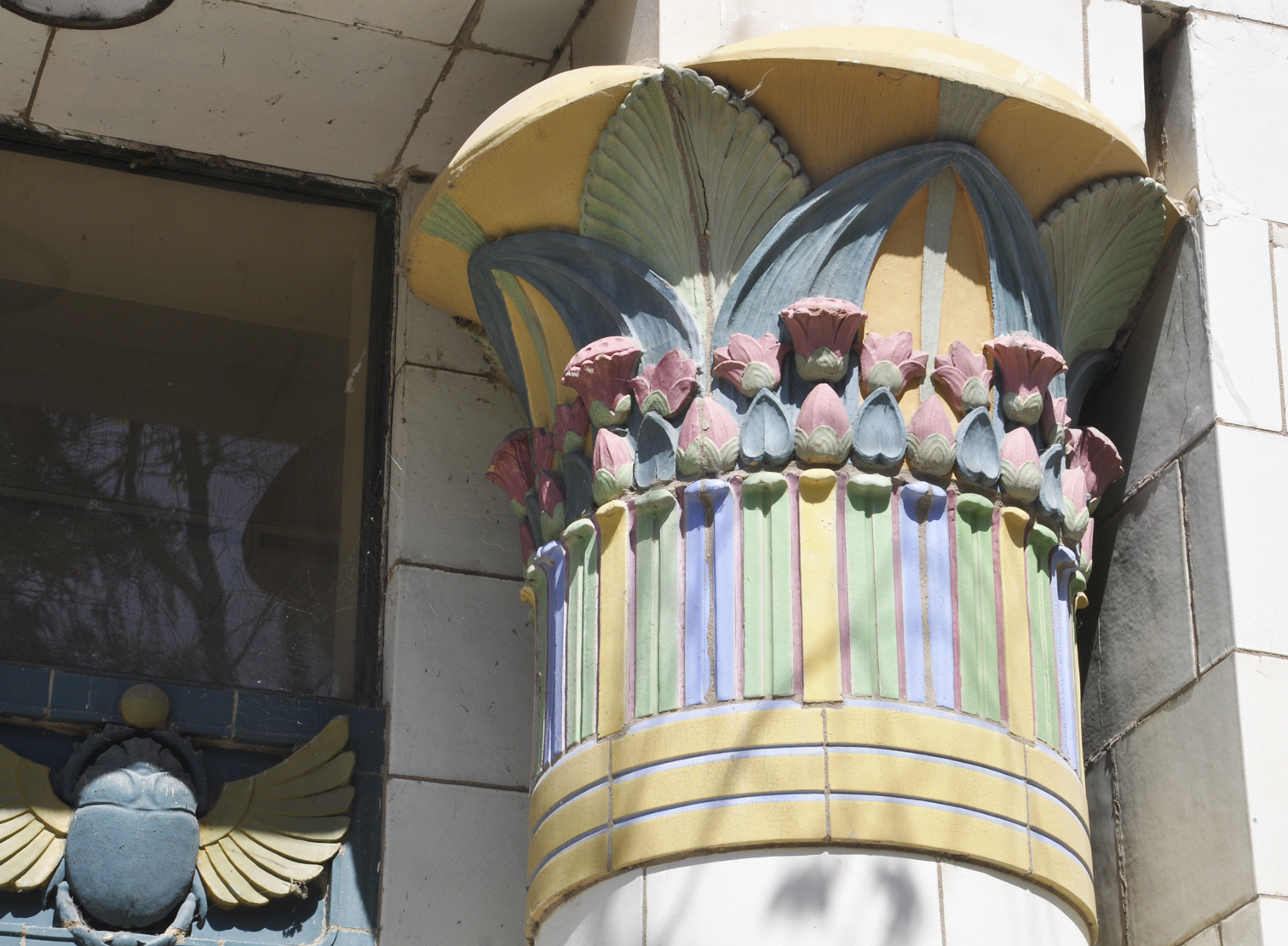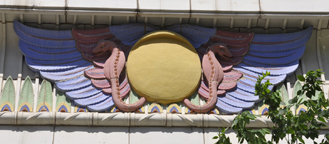 The Reebie Storage and Moving Company building was designed by  George S. Kingsley and built from 1921-1922.  The terra cotta details were sculpted by Fritz Albert.  The company's slogan is "If old King Tut were alive today, he'd store his things the Reebie way."   [map]