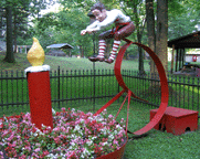 | These concrete playground figures were created by Gordon Clute. The whale, castle, and shoe house are gone now. There was also a big dog. They were apparently destroyed for safety reasons. The smaller figures remain. The cartoon statues were moved to the Tawas City Library. |