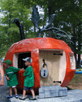 The Enchanted Forest (originally Enchanted Forest of the Adirondacks) was designed by Russell Patterson and opened in 1956. Built on 80 acres of swampland, it was conceived of as a small theme park "for the Young and the Young at Heart. The Paul Bunyan, the Crooked House, the Peter Pumpkin Eater Pumpkin, and Ali Baba's Cave are just some of the original features. In the 1960s, the park hosted the Great Wallendas high wire act, Tarzan, clown and circus shows, and lumberjack contests. Circus and high wire acts are still featured today.
