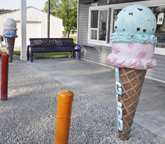 These Ice Cream Cones in Savanna were installed at the Shivers Ice Cream Shoppe around 2020. The business is now known as the Polar Express but the cones remain. [map]