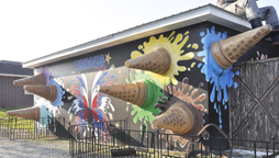 Knoebels Amusement Park has two giant cones at its concession stands. There is also a giant birthday cake pavilion. |