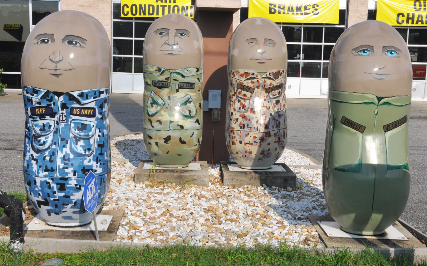 | More than 60 four-foot-tall fiberglass peanut statues are located in Dothan. The original statues were installed in 2001 as part of "Peanuts on Parade." More were installed later as part of the "Peanuts Around Town" art project. They are still being produced by Replica Plastics. For more, see these websites: 1 and 2. |