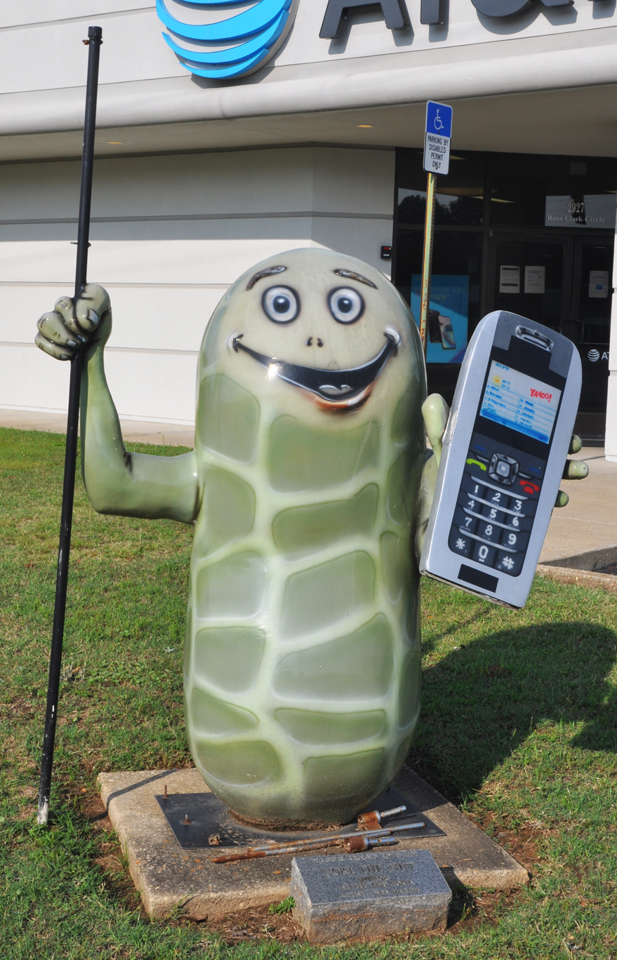 Dothan is considered the peanut capital of the world and hosts the annual National Peanut Festival. There were two Gold Peanuts in town. The Golden Peanut next to the Dothan Visitors Center was installed in 1993. It was created by local artists, Larry and Ronald Godwin, who also created the Giant Rooster in Brundidge, AL. [map]