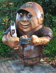 | The Giant Pecan is twelve feet long and seven feet in diameter. It was built from concrete in 1982 and was installed in front of James Pecan Farms' Nut Hut. By 2010, the business had closed and the land was up for sale. In 2013, the Pecan was restored and moved downtown next to City Hall. For more, see this website. [map] |