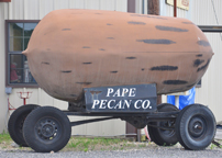 | The Giant Mobile Pecan is installed in front of the Pape Pecan House. The pecan was built in 2002 and is 10 feet long by five feet tall. It is used in local parades and events. Around 2016, this Pecan was moved to the store's new location. For more, see these websites: 1 and 2. [map] |