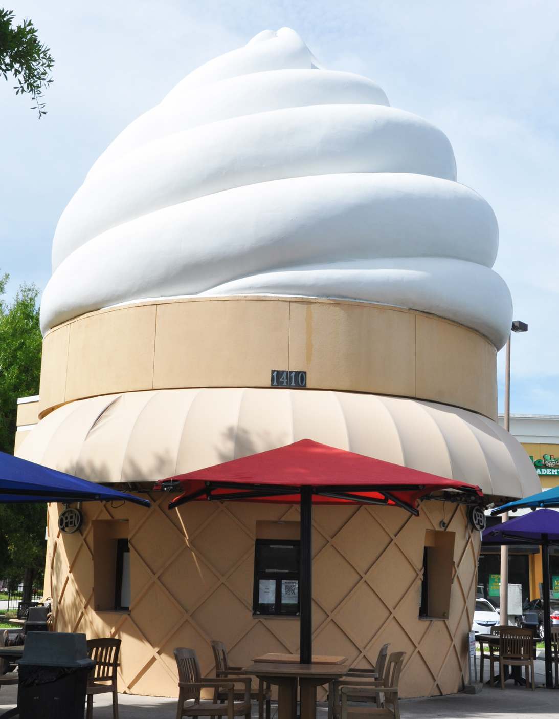 The modern Twistee Treat in Ocala on SW College Rd. has been there since around 2015. [map] This vintage Twistee Treat in Ocoee has been there since at least 2007. There is a giant cone at the side of the building. [map] |
