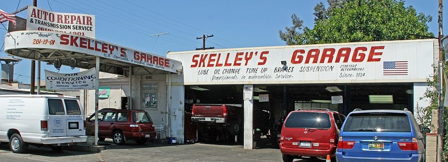 | This former station has a rounded off canopy similar to those above. However, it has a patched on look and might have been added later. The building now houses Skelley's Garage. Their sign claims they have been here since 1934. Does anyone know the history of this building? [photos thanks Gregory May] [map] |