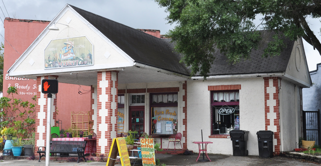 | This former Texaco station may have been built in 1924 as indicated on the hand-painted sign in the round window on the side of the building. The building is still vacant. By 2018, the canopy's roof was gone. In 2024, the building was gutted and was being reconstructed for Palatka Burger. [map] |