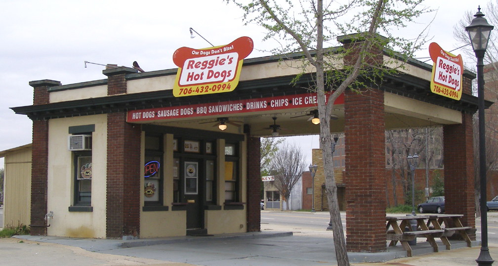 | This former Gulf station housed Reggie's Hot Dogs when this photo was taken in 2009. The building was demolished in 2010. |