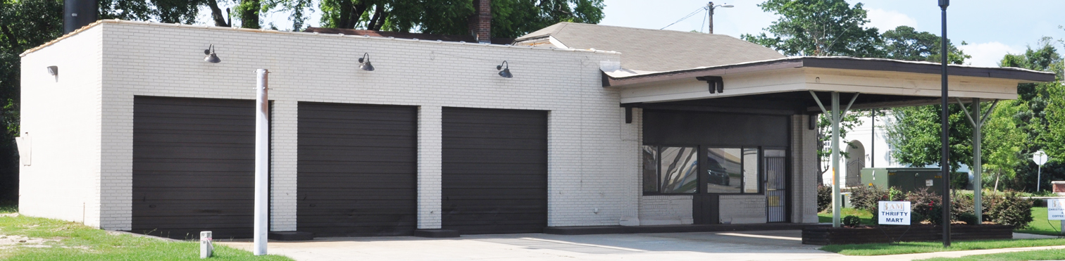 | This former Texaco station was built in 1932. The bay building on the left is a later addition. The canopy would have looked like the one in Newnan shown below. This building currently houses the King of Kings Korner. [map] |