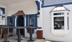| This former Pure Oil station was built in 1927 as Metcalf's Pure Oil. The building housed the Purple Cow Ice Cream & Coffee Shop in 2005. Before that, it housed Now and Then Antiques. By 2013, the building was housing the Hissy Fits gift shop. It appeared to be vacant in 2019. In 2021, the building was being renovated and the canopy was opened up again. It now houses Pure Chipley, a German restaurant. [map] |