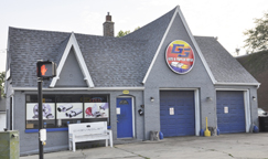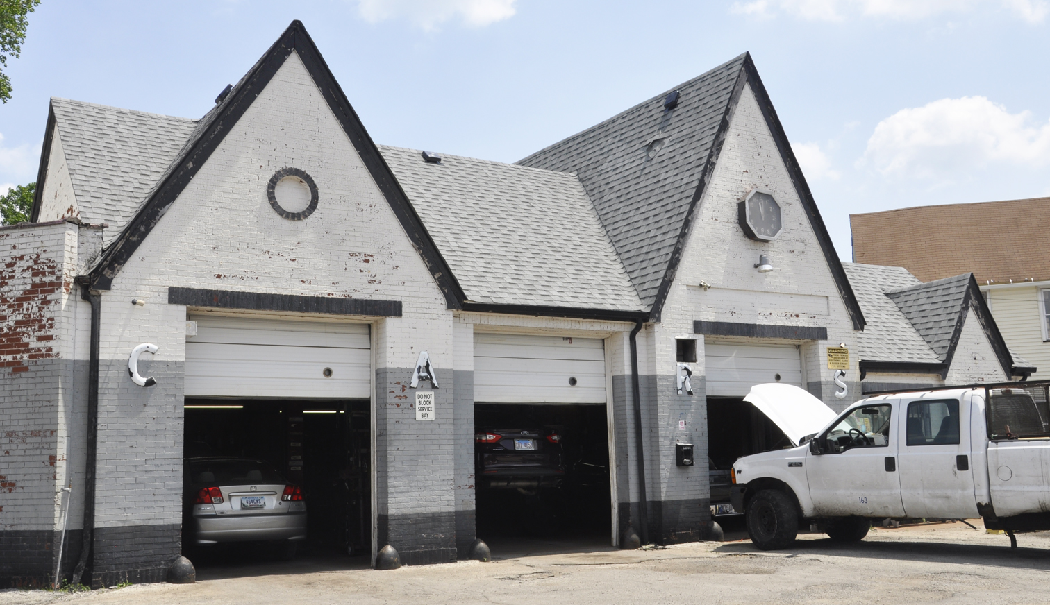 This building appears to be a former Phillips 66 station with only the bottom half of the chimney left. It now houses the J&S Foreign Car service garage. [map]