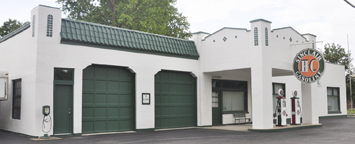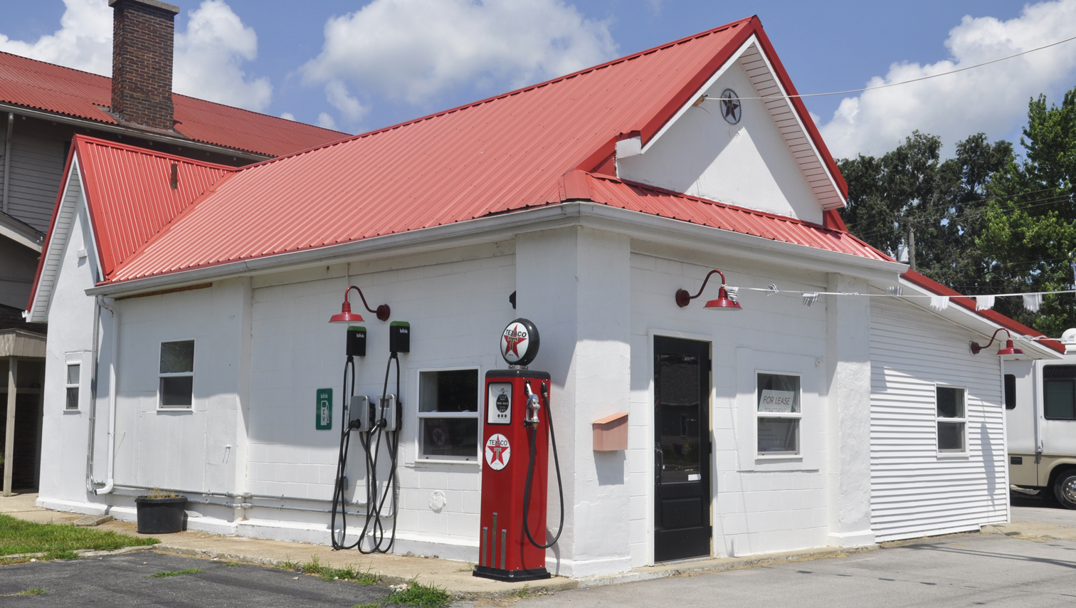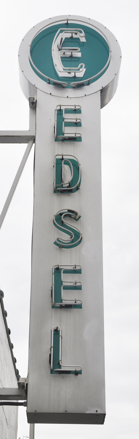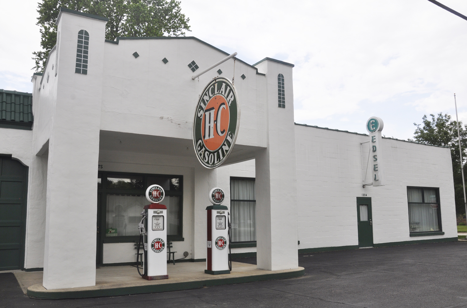 | This former Sinclair station was built in 1929. At some point, the addition to the right was built for a car dealership. I believe it was Auburn Motor Sales originally which might have opened here in 1944. In the 1950s, Edsels were sold here, possibly by D&M Motor Sales. Oscar Roberts bought the building in 2007 and began restoring it. The Edsel sign was added around 2019. [map] |
