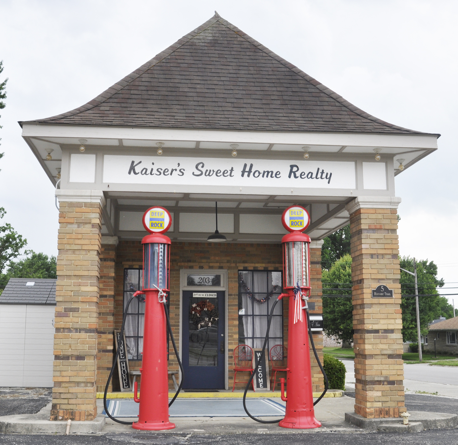This former Hy-Red station was built in 1930. It is also known as the Hy-Red Gulf Filling Station. The building now houses a real estate office. [map]