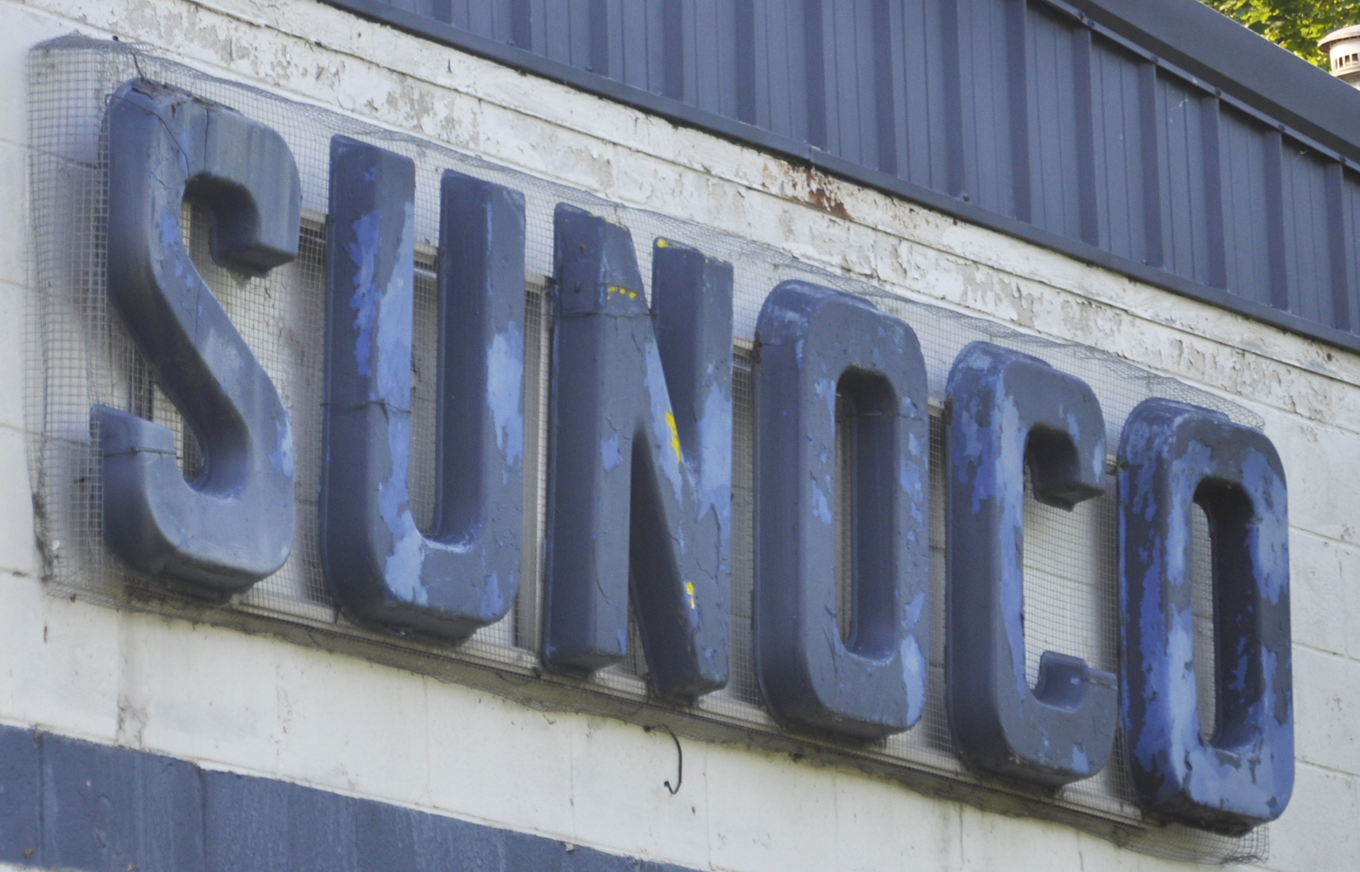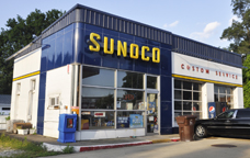 Craig's Sunoco occupied this building when this photo was taken in 2009. It hadn't sold gas since at least 1995. The red letters once read "Custom Service". By 2015, the building was vacant but the Sunoco blue panels and sign were still on the building. They were gone by 2016.