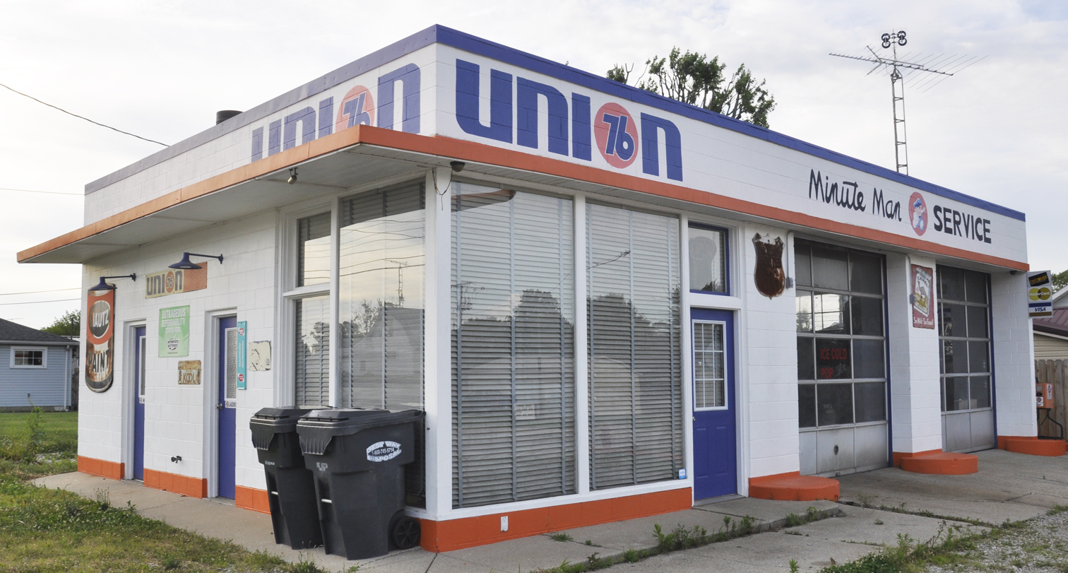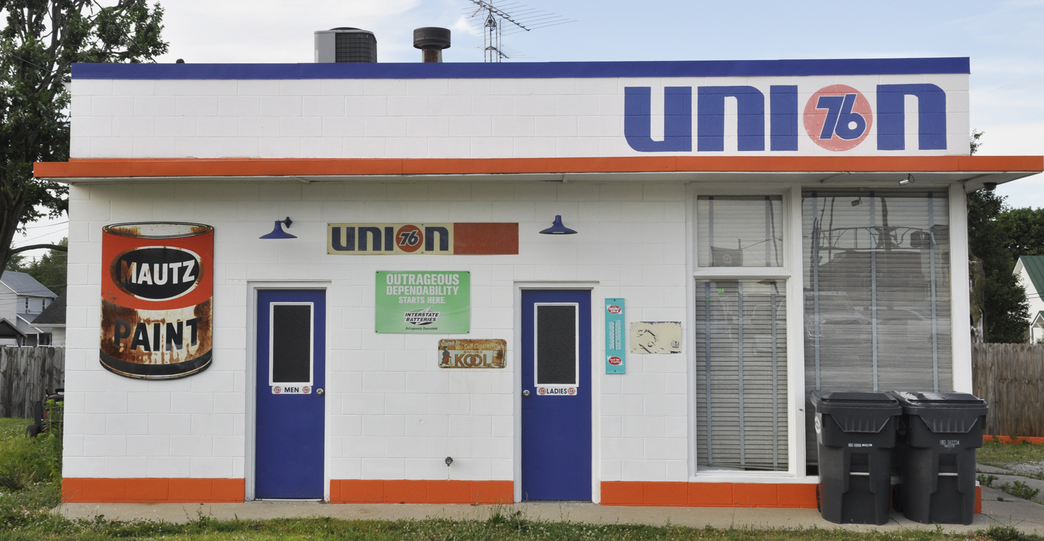 | This Pure Oil station was built in 1961. It operated as a Union 76 station in the 1970s. In 2014, the building was restored as a Union 76. [map] |