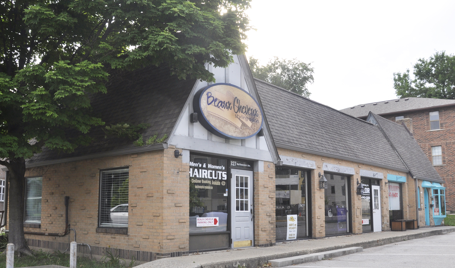 The former station on the right was built in 1929. It had been repainted but was still vacant in 2013. By 2018, the building was housing the Envy Salon & Spa. [map]