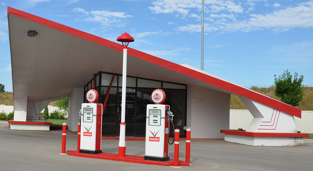 There was another Vickers station in Wichita of this design which has been demolished. It was known as the Cardwell Service Station. There are a few Orbit stations in California which feature a similar building style. There is another gas station with a parabolic roof in Fayetteville, NC. |
