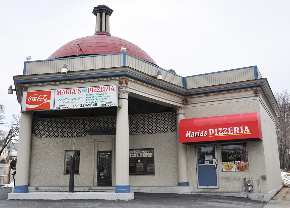 This Beacon Oil station is now used by Maria's Pizzeria. In the 1970s, this building housed an Esso station. [map]