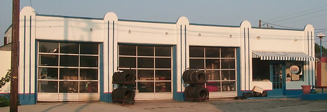 | This former Esso station was built in the 1930s. It housed a tire shop when these photos were taken in 2008. It now houses Lamb's Transport. [photos thanks Robby Delius] [map] |